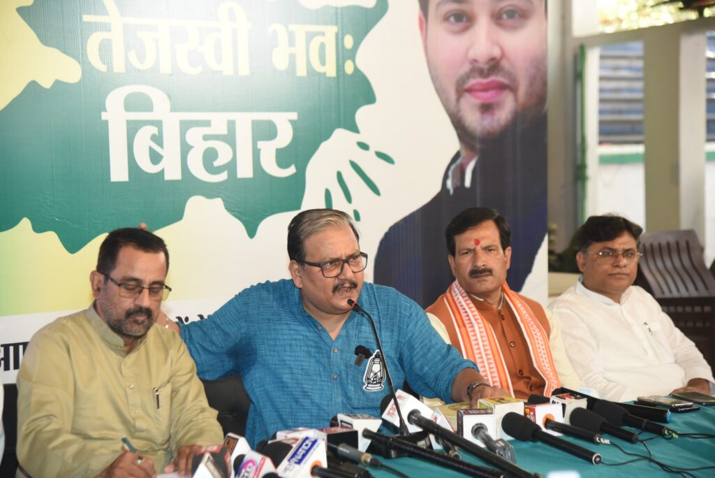 इन्होंने कहा कि देश ने व्यक्ति प्रेम की राजनीति को 10 सालों से देखा है और उस व्यक्ति के सामने भाजपा के नेता मुंह तक नहीं खोलते हैं ,जो लोकतंत्र लोकतांत्रिक व्यवस्था को कमजोर कर रहे हैं, जबकि सबको पता है कि लोकतंत्र में सामूहिकता और सब की सहमति आवश्यक होती है जो देखी नहीं जा रही है। इस अवसर पर संवाददाता सम्मेलन में प्रदेश राजद के प्रवक्ता एजाज अहमद ,मृत्युंजय तिवारी, अरुण कुमार यादव, प्रमोद कुमार सिन्हा, अति पिछड़ा प्रकोष्ठ के प्रदेश प्रवक्ता उपेंद्र चंद्रवंशी भी उपस्थित थे।
