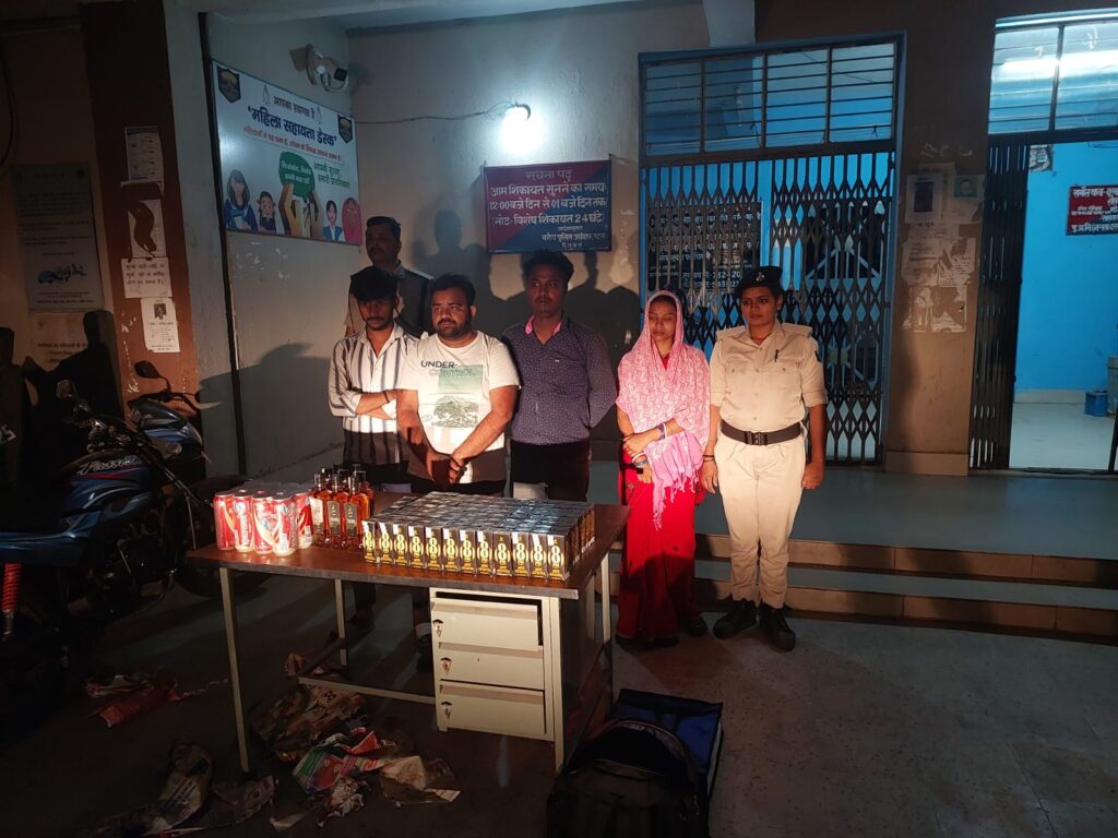 पाटलिपुत्रा न्यूज , रजत कुमार @ खगौल : खगौल थाना क्षेत्र के दानापुर रेलवे स्टेशन के पास सुलभ शौचालय के पास से एक कार के साथ चार शराब तस्कर गिरफ्तार।पकड़ा गया शराब तस्कर में तीन पुरुष एक महिला है।गुप्त सूचना मिले के दानापुर रेलवे स्टेशन के पास एक ऑटो कार गाड़ी संख्या बीआर1एजे7190 से अंग्रेजी शराब ले जाया जा रहा है इसी आधार पर पुलिस ने ऑटो कर की जांच की जिसमे 94 पीस टेट्रा पैक,8 पीस हाफ शराब की बोतल और 12 पीस बियर के साथ पकड़ा गया है। इस संबंध में खबर थाना अध्यक्ष सुनील कुमार ने बताया कि गुप्त सूचना मिली कि एक आल्टो कार से अंग्रेजी शराब ले जाया जा रहा है जिसके बाद पुलिस ने आल्टो कार की तलाशी गई कर में शराब बरामद हुआ। पकड़ा गया शराब तस्कर सोनू कुमार,विकास कुमार,प्रकाश कुमार एवम प्रियंका देवी है।ये सभी शराब के साथ शास्त्री नगर जा रहे थे जिसे गिरफ्तार कर करवाई कर न्यायिक हिरासत में भेज दिया गया।