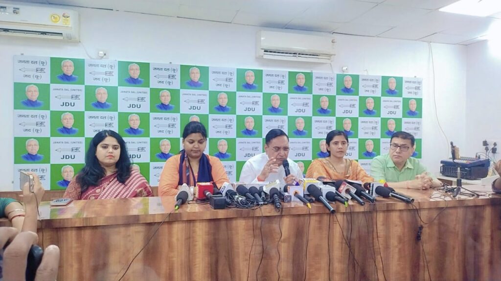पाटलिपुत्रा न्यूज़ @डेस्क पटनाः आज जदयू कार्यालय में जदयू के राष्ट्रीय प्रवक्ता व अतिपिछड़ा समाज के नेता राजीव रंजन, प्रदेष प्रवक्ता श्रीमती अंजुम आरा एवं सुश्री अनुप्रिया ने संयुक्त तौर पर आयोजित प्रेस वार्ता को संबोधित करते हुए कहा है कि जिस राजद ने 15 वर्ष के राज में समाज के किसी भी वर्ग के आरक्षण को 1ः भी नहीं बढ़ाया, आज उसके युवराज अपना राज आने पर फिर से कर्पूरी माॅडल लागू कर नीतीश राज में बढे आरक्षण को घटाने का दावा कर रहे हैं. राजद के युवराज जान लें कि बिहार के दलित-पिछड़े औत अतिपिछड़े समाज के लोग नीतीश राज में मिले आरक्षण से किसी तरह की छेड़छाड़ बर्दाश्त नहीं करने वाले. ऐसा मंसूबा रखने वाले लोगों की जनता खाट खड़ी कर देगी।