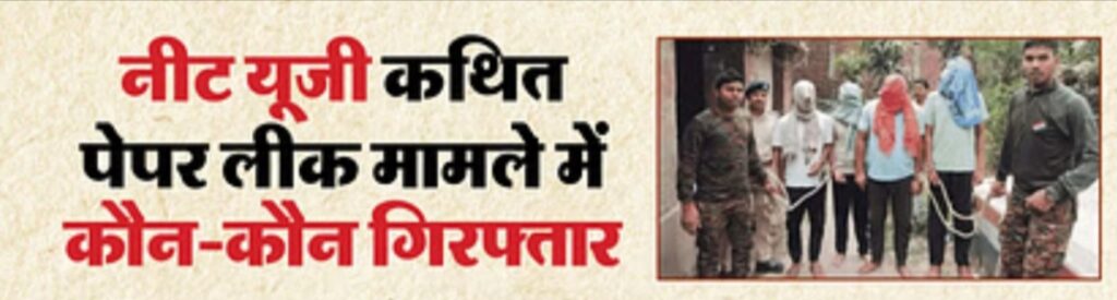 अब तक नीट पेपर लीक केस में गिरफ्तार किए गए प्रमुख आरोपियों के नाम ( सिकंदर यादवेंदु , बिट्टू , नीतीश , अमित आनंद , आयुष (परीक्षार्थी) , अनुराग (परीक्षार्थी) , चिंटू , पंकू , काजू , राजीव , अजीत कुमार